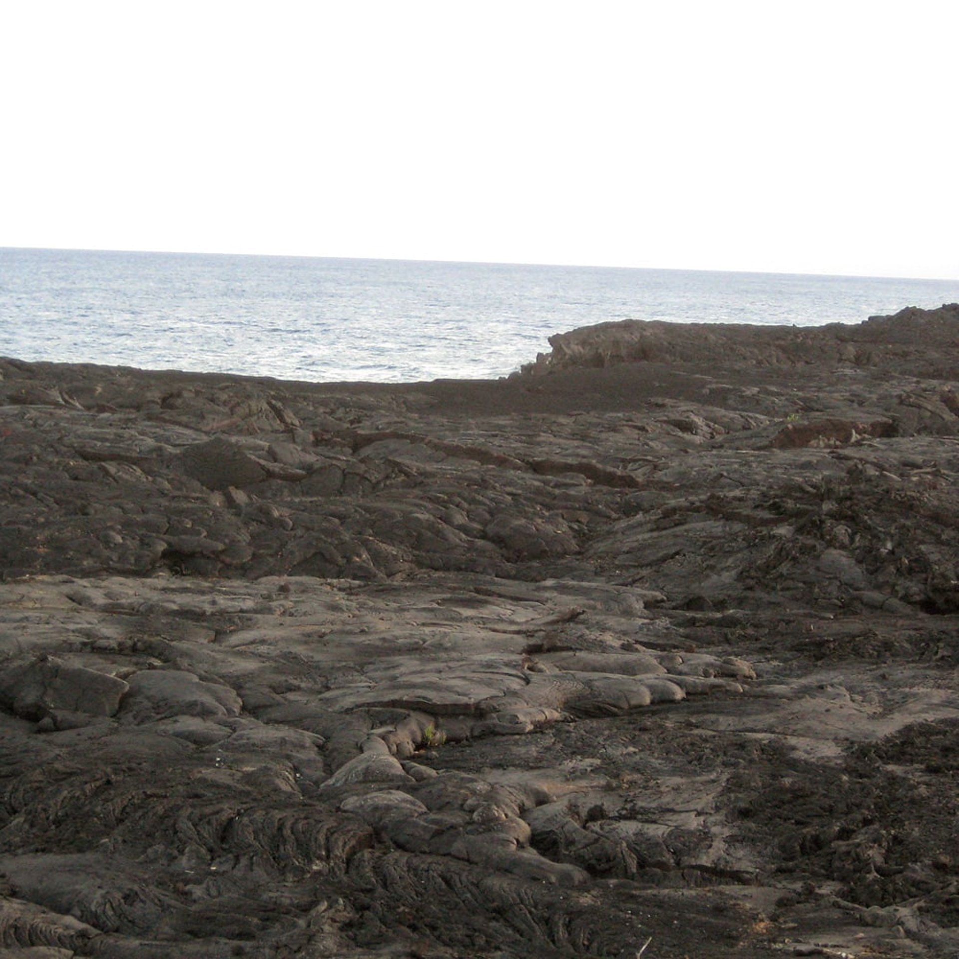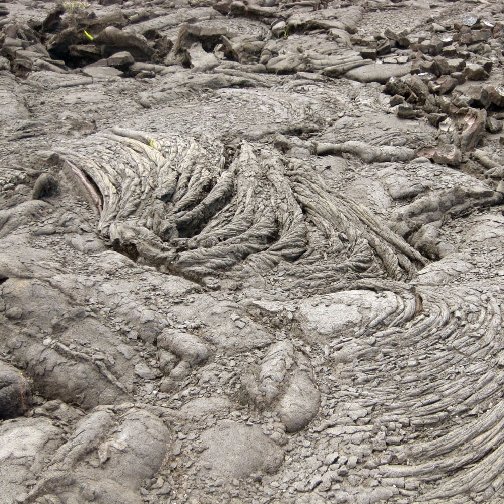 Die Erde ist bedeckt mit gekühlter und hart gewordener Lava. Und man kann noch genau sehen, wie diese Masse geflossen und dann hart geworden ist. An einer anderen weiter südlicheren Ecke gibt es eine Stelle, an der immer noch in regelmäßigen Abständen heiße Lava des Kilauea ins Meer fließt. Da sind wir natürlich noch hingefahren, um uns dieses Schauspiel aus sicherer Entfernung anzuschauen. Denn selbstverständlich warnen haushohe Schilder vor der Gefährlichkeit dieses Unterfangen und man kann dieses Gebiet nur auf „own risk“ betreten. Komisch, dass dann doch bussweise die Touristen dorthin gefahren werden und man den fotografierenden Japanern kaum ausweichen kann. Witzigerweise tragen diese Rettungswesten und Handschuhe… wir haben leider nicht erfahren, wofür das gut sein soll. Unser japanisch ist einfach noch nicht gut genug. Aber beruhigt waren wir dann doch als wir sahen, dass überall Führungsleinen gespannt waren und auf dem Boden gelbe Marker auf den Steinen angebracht waren, die man sicher betreten konnte…