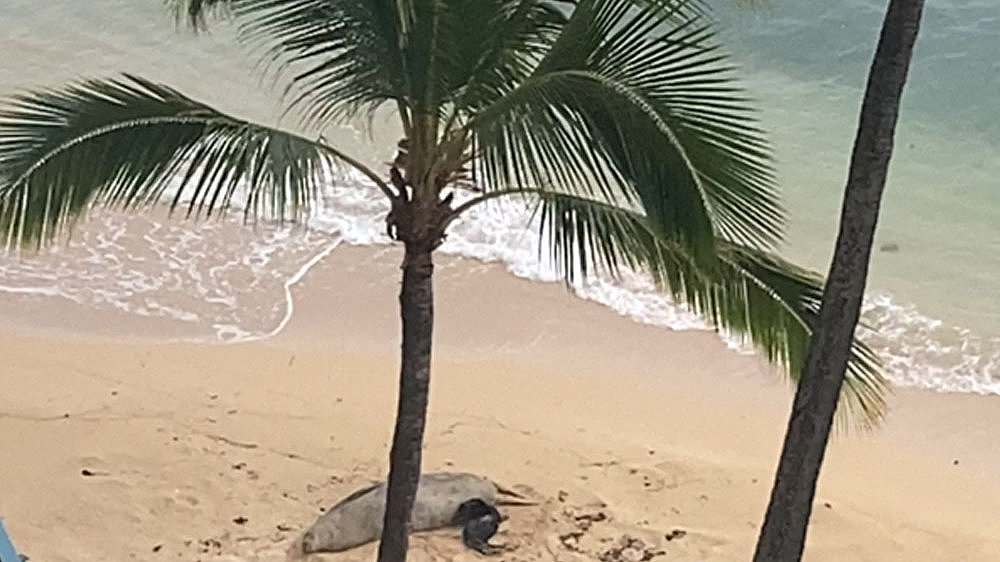 Mönchsrobben Nachwuchs an der Kaimana Beach
