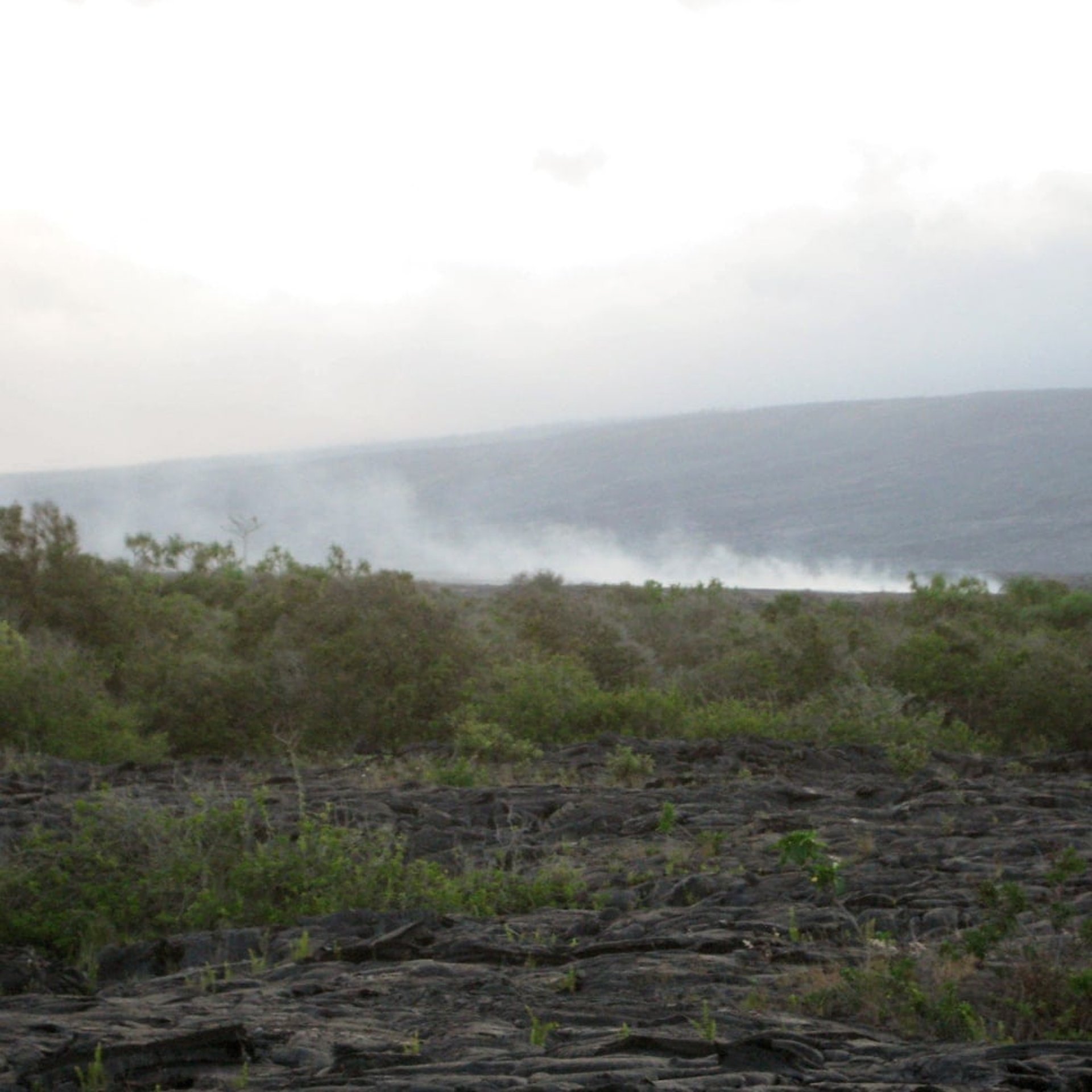 Auf der östlichen Seite angekommen fährt man immer an der Küste entlang bis zum Gebiet des Mauna Loa. Mauna heißt hier wieder Berg und Loa bedeutet „lang“. Der Berg ist tatsächlich mit 4.170 m nicht ganz so hoch wie der Mauna Kea aber seine Fläche bedeckt durch seine unglaubliche Länge einen Großteil der Insel. Vor dem Mauna Loa gibt es deinen ausgekühlten Krater. In diesen kann man runtersteigen und durchwandern. Wie gesagt durch den „kleinen“ kann man wandern… Im Hintergrund dampft, qualmt und zischt der Kilauea noch gewaltig.
