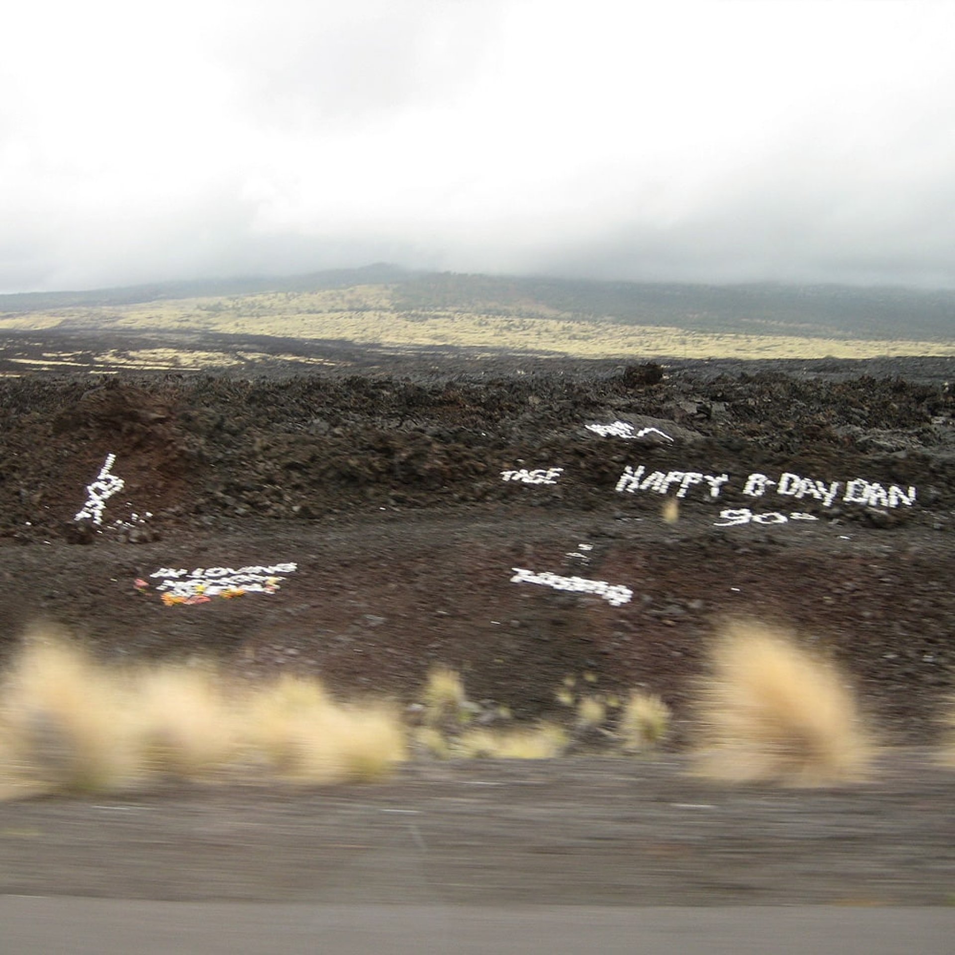 So! und noch jemanden haben wir wieder gefunden. Wir haben unseren grünen Jeep wieder. Hier auf Hawai’i ist so ein Jeep ganz praktisch, wegen der teilweise unwegsamen Gebiete. Darüber scheibe ich in den nächsten Tagen mehr. Hier fließt immer noch Lava und ein Großteil der Landschaft ist kohlrabenschwarz. Die Besucher schreiben mit weißen Steinen kleine Botschaften oder Namen auf die schwarze Lava. Dazu mache ich noch ein paar bessere Bilder. Wir haben ja jetzt erst einmal 10 Tage hier bis wir aufbrechen nach Maui.