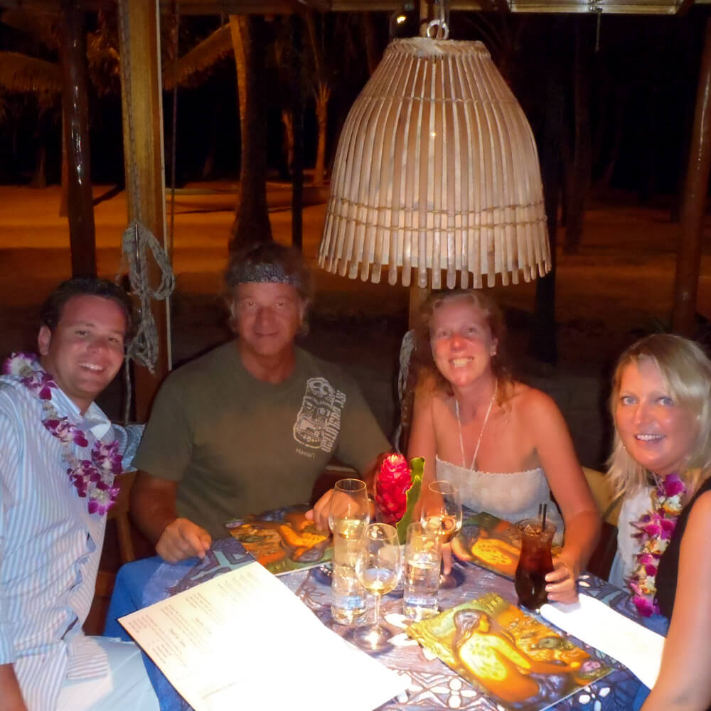 Es gab bei Mama´s natürlich Lei für die Honeymooner und diesmal sogar zwei Black Pearls – das unglaublichste Dessert on the Island. Nach langem Erzählen und den obligatorischen Bildern an der Beach von Mama`s sind die zwei Flitterer dann wieder Richtung Hotel aufgebrochen.