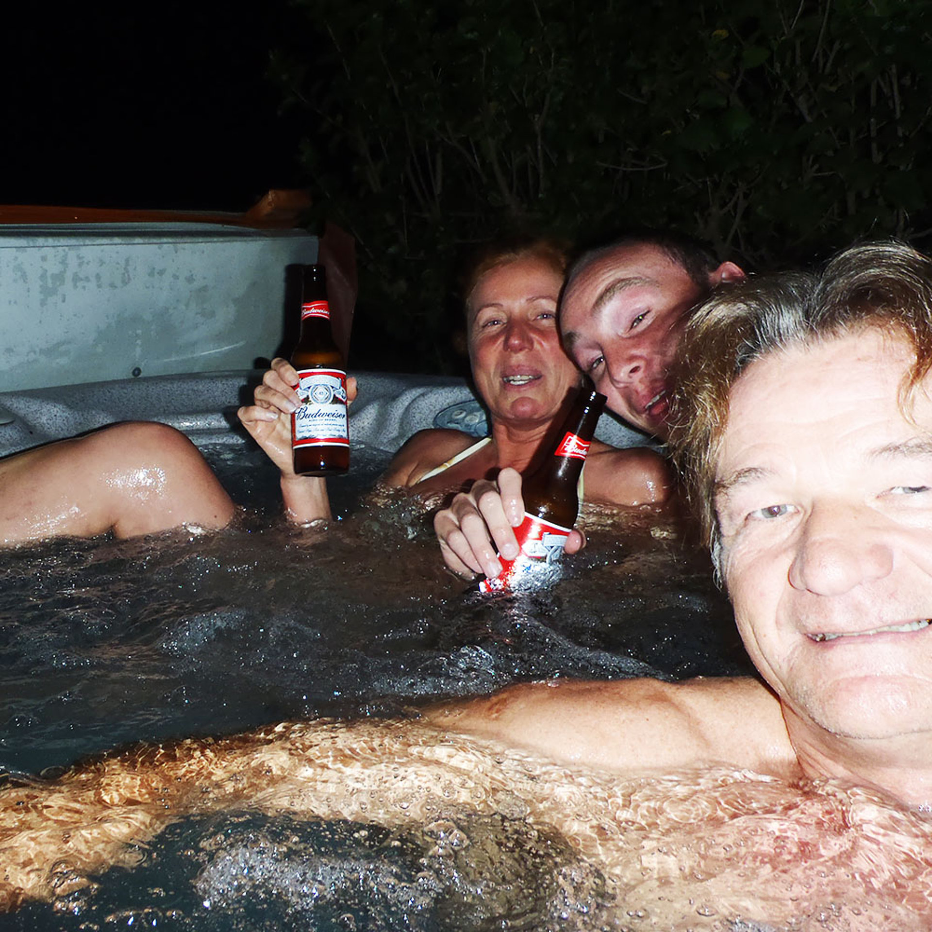 Nachdem der Tag soooo anstrengend war, haben wir ihn gemütlich bei einem lecker kalten Bierchen (leider kein Kölsch) im Jacuzzi ausklingen lassen. Das Leben kann soooo schön sein.